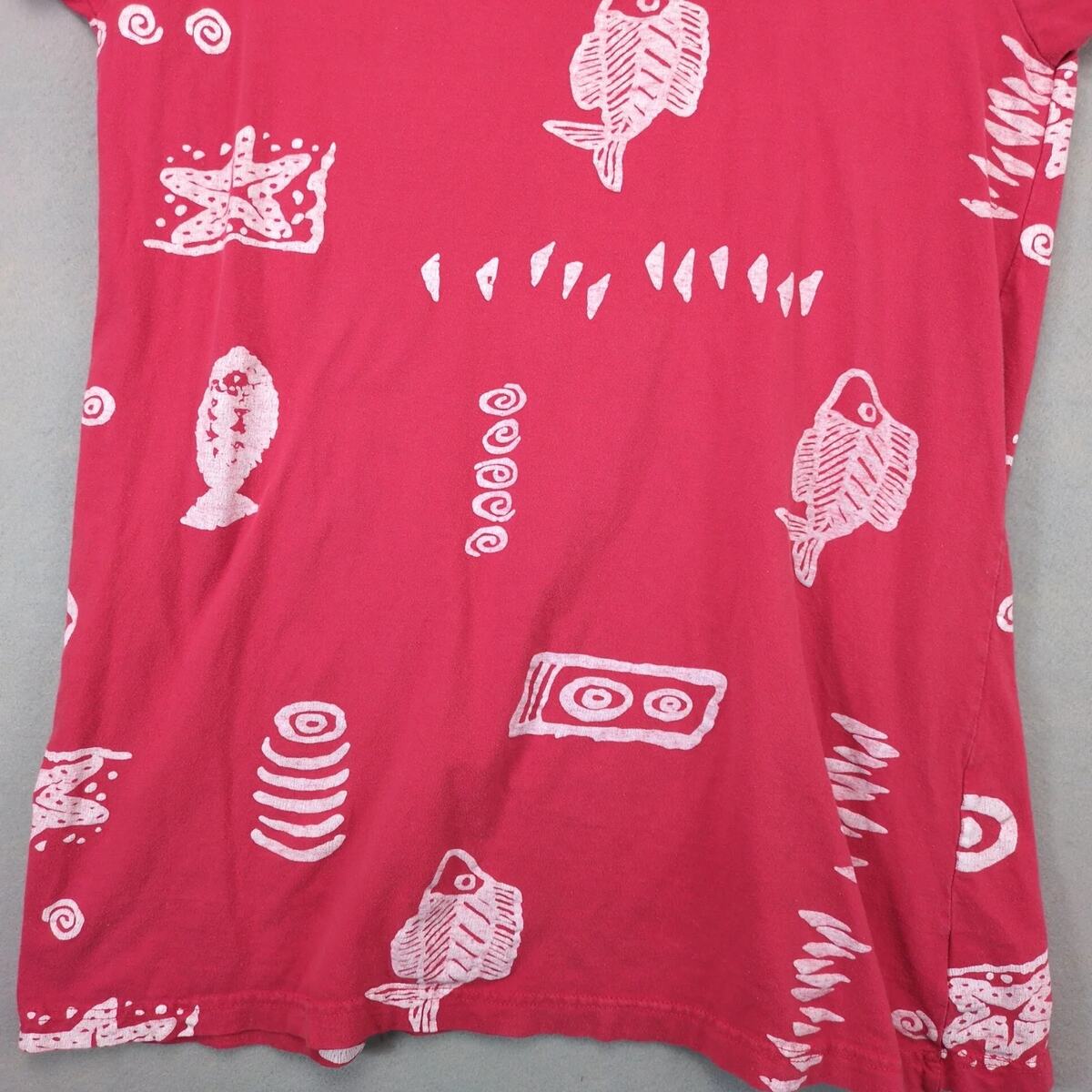 Magu Pink Tropical Fish Tribal A-Line T-Shirt Mini Dress Size M Cotton