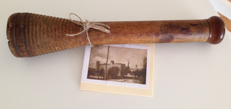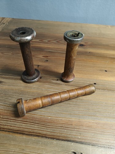 This is an antique thread spool bobbin from the Mississippi Textile Mill in Wesson, Missouri. There is a card attached with a picture of the mill as it stood after the Civil War, and a brief history on the back side. The inside of the card is blank, so it may be used as a gift card if you are giving this special collectible to someone. The spool measures about 12? in length, and 2 oe? across the base. It is solid wood except for a metal core inside at the bottom of the bobbin. Full of nicks, wear, and charming character flaws from years of service. We are a smoke-free home.