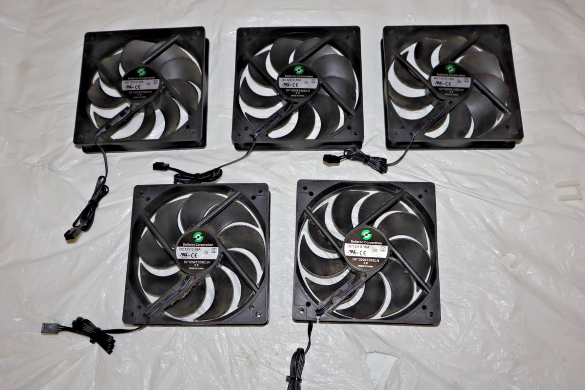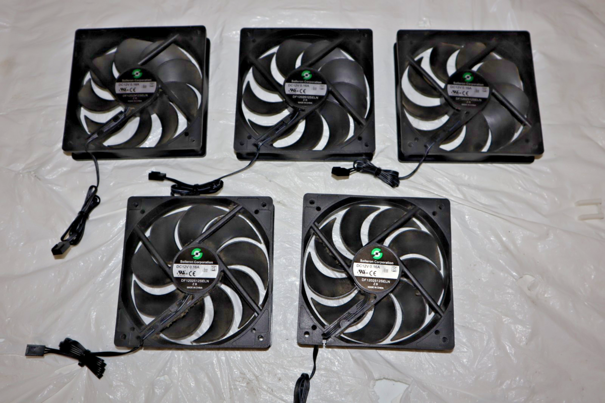 Solleron Corporation DF1202512SELN 12V Black Case Fan 3-Pin DC 12V 0.16A 4-3/4" x 4-3/4" Lot of 5
