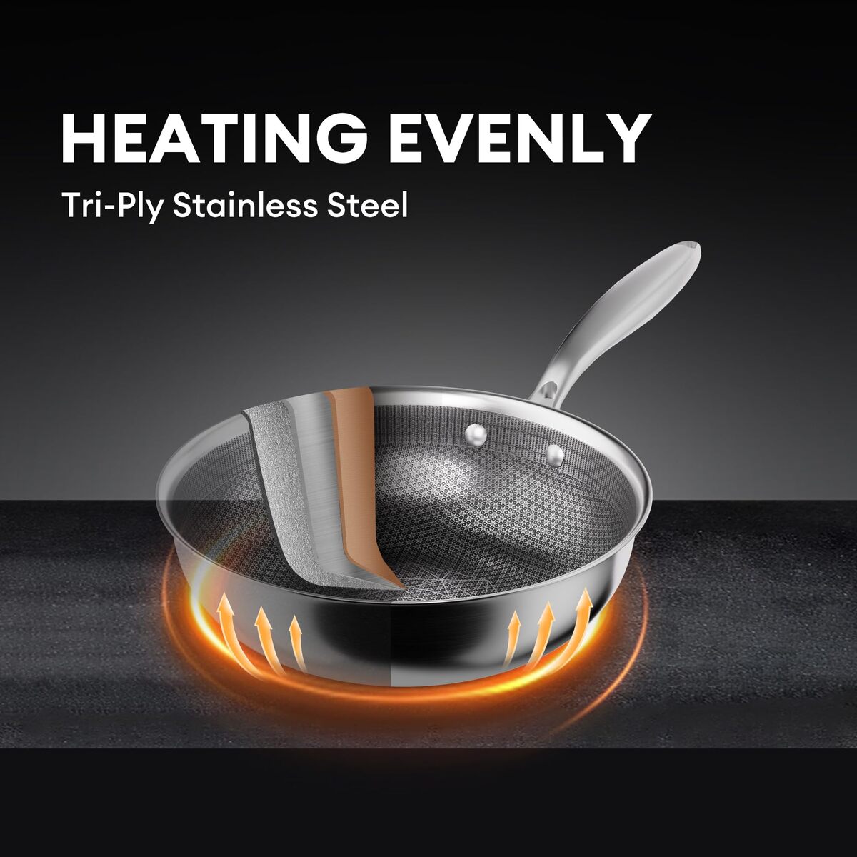 Chef-Grade Triply Construction:The wok features 18/10 surgical-grade stainless steel with an aluminium core for even heat distribution, preventing hot spots and ensuring perfect searing every time. It is oven-safe and rust-resistant for long-lasting durability
