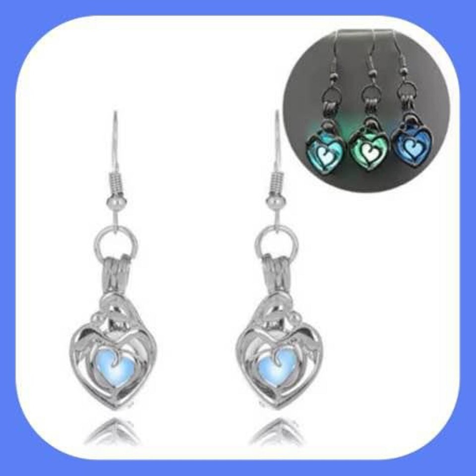 New Absolutely Stunning Solar Luminous Double Heart Earrings ~ Blue