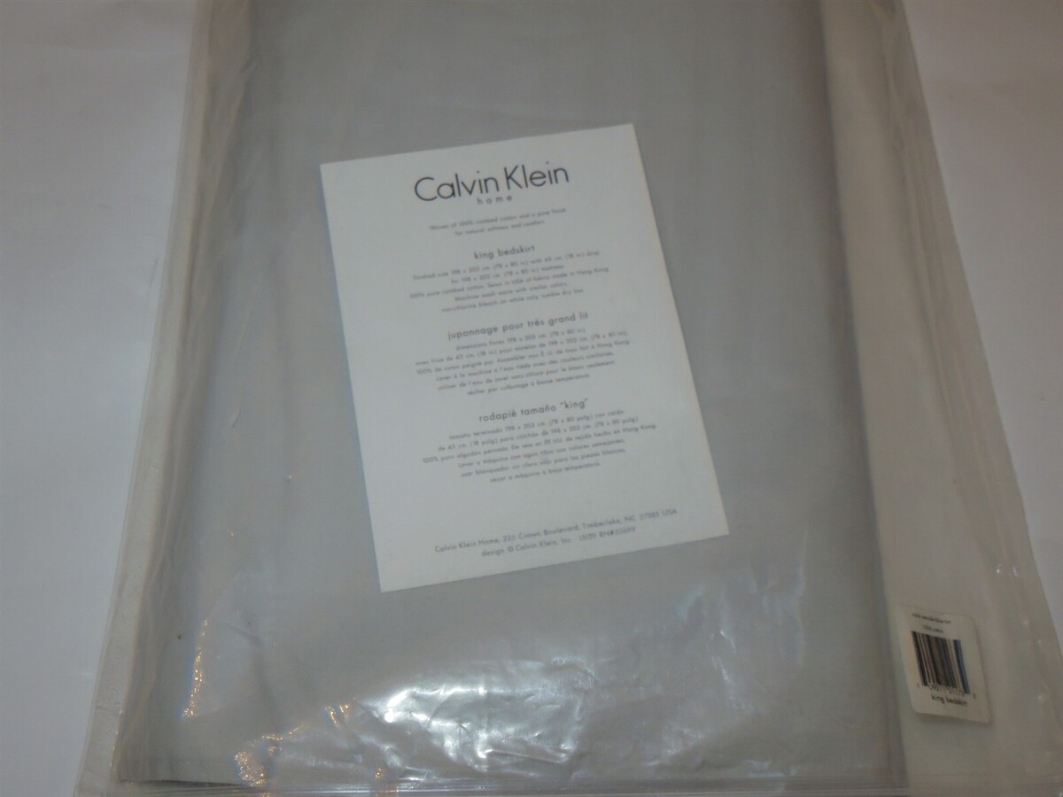 Calvin Klein Solid percale blue tint light blue grey King Bedskirt NIP