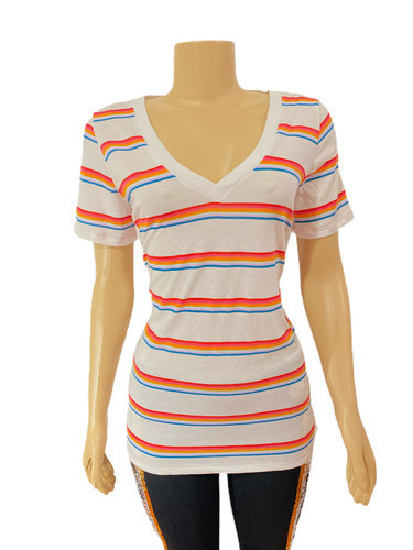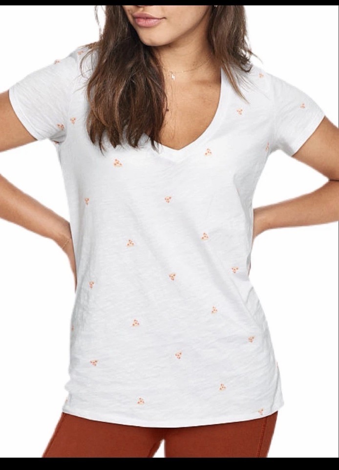 Victorias Secret PINK Perfect V-Neck Short Sleeve Pizza Tee T-Shirt White Small