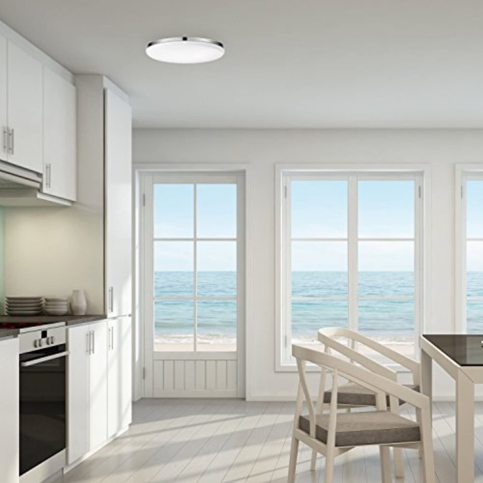 Globe Electric 65584 Ellington LED Integrated Flush Mount Ceiling Light, Chrome Ceiling Lighting, Frosted Shade, Energy Star Certified, Ultra Slim Design, Dimmable LED Light,