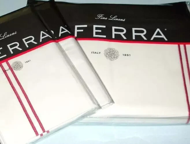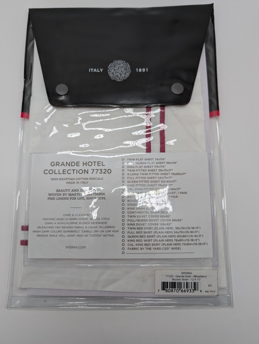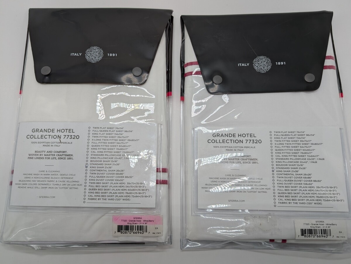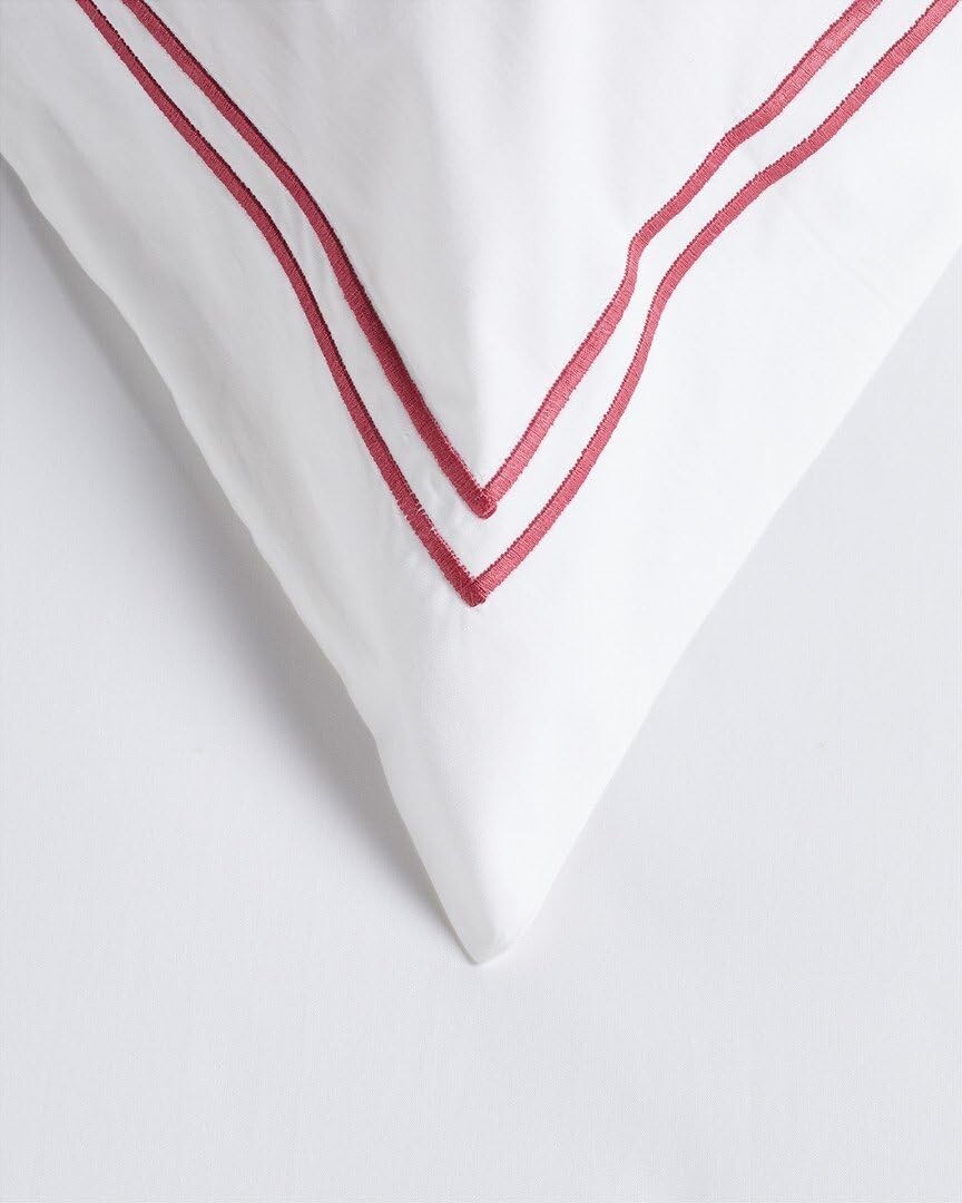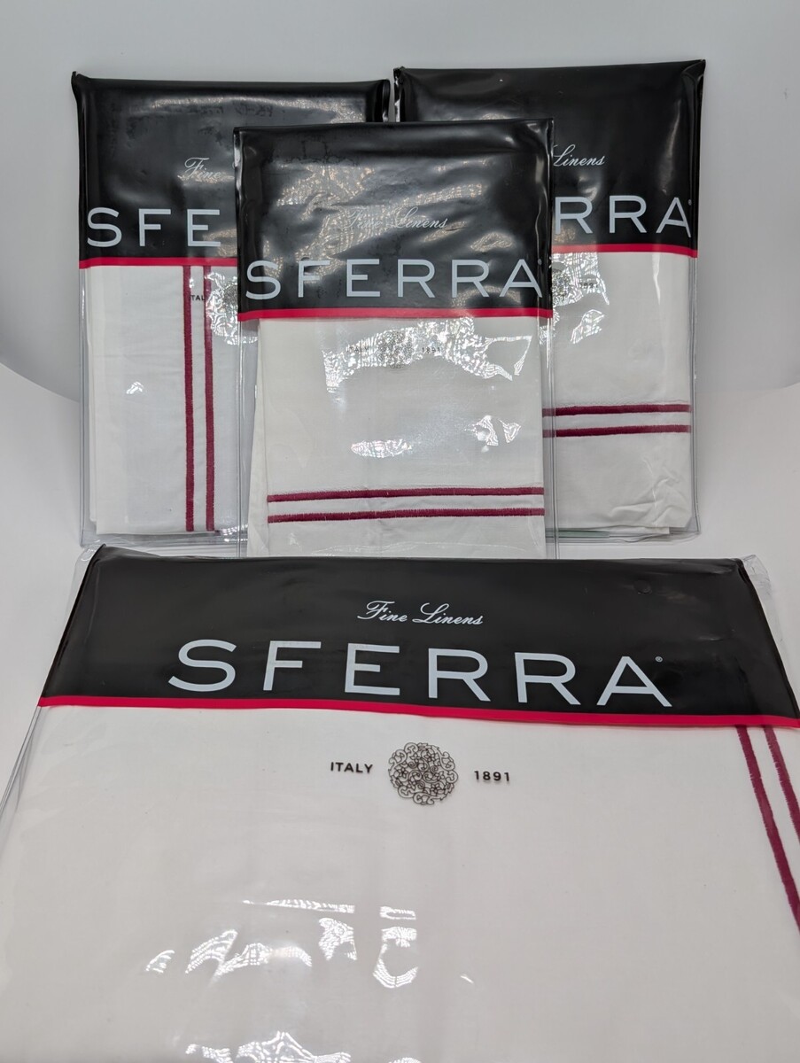 Sferra Grande Hotel White King Duvet Set 4PC Red Berry Stripes Cotton Italy NEW