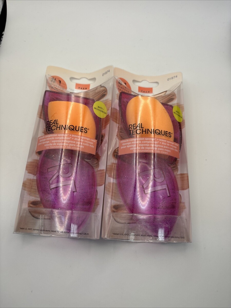 2 Real Techniques Miracle Complexion Beauty Sponge Makeup Blender + Travel Case