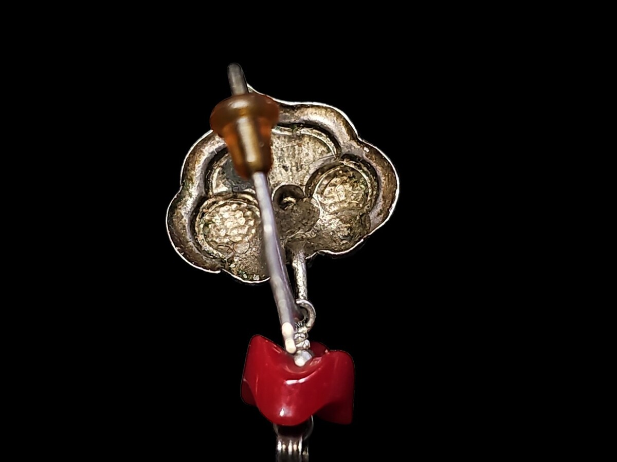 The dragon imagery and construction are consistent with mid-20th-century Asian export jewelry, produced for Western markets and known for its dramatic design, symbolic motifs, and quality craftsmanship. These are large, statement-scale earrings intended to be visually striking rather than subtle.