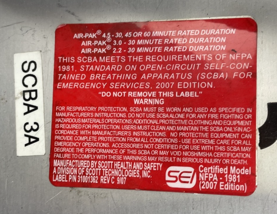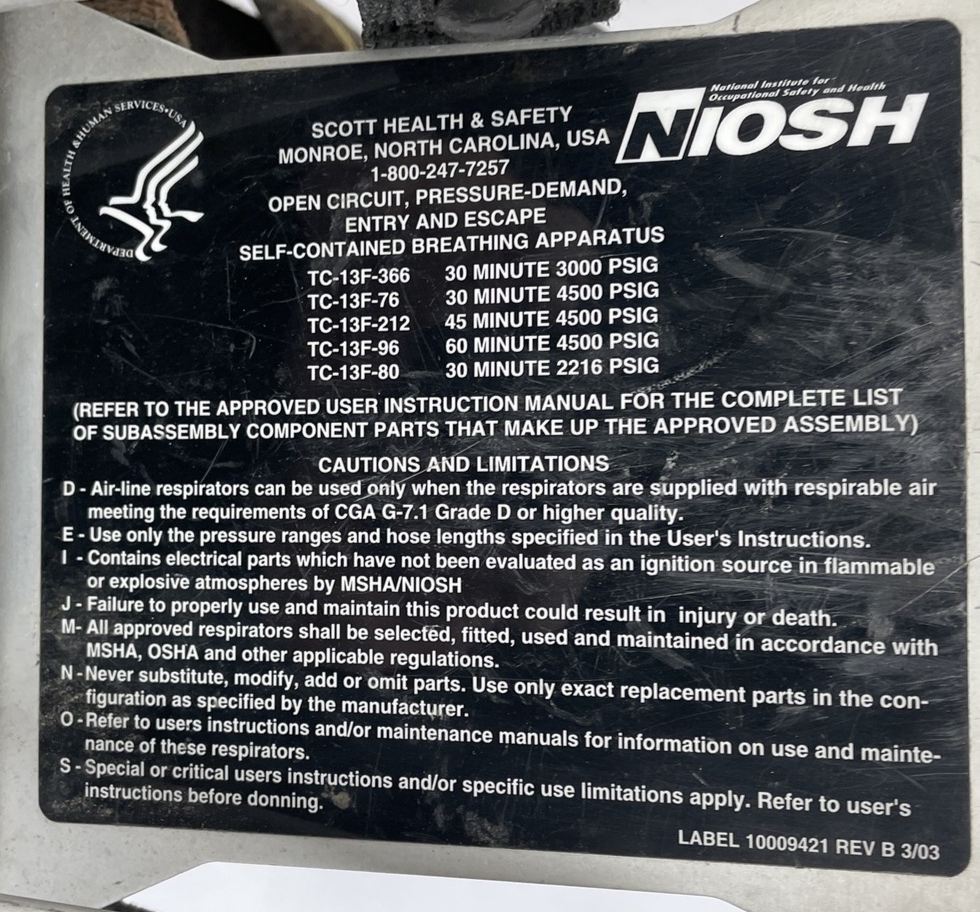 SCOTT SAFETY 4.5 4500 SCBA Air Pack Harness EZ-Flow Air Pak Plus with Sensor L