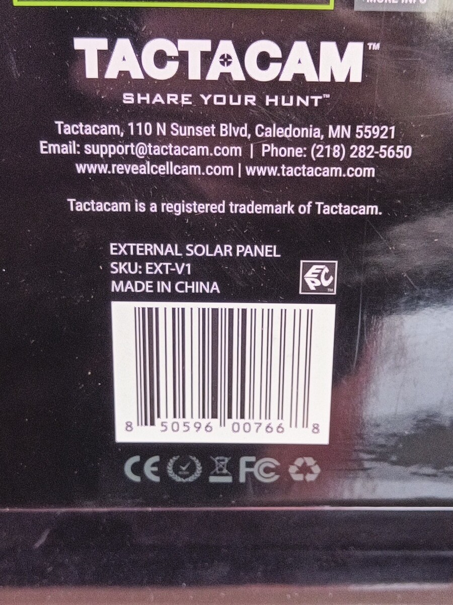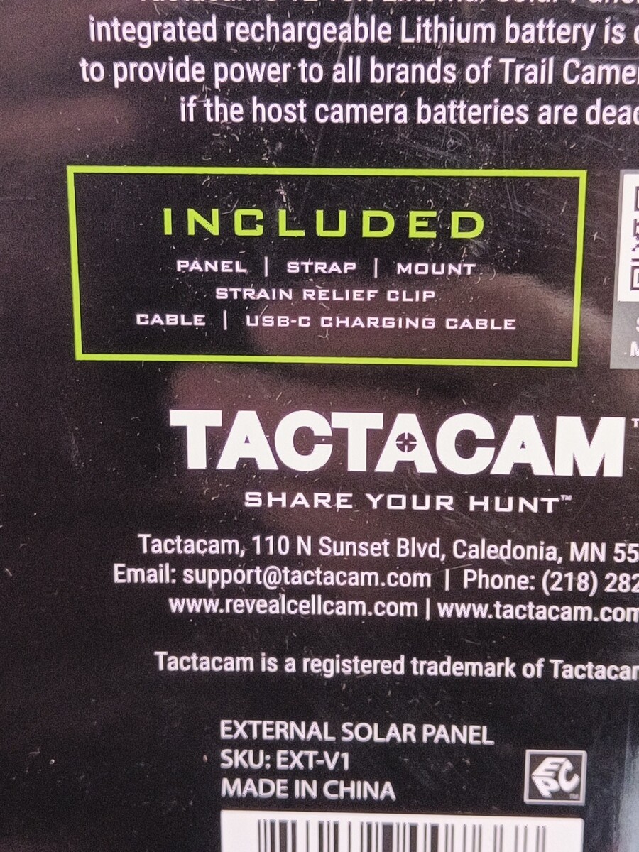 Tactacam Solar Panel for Cellular Security Camera Reveal EXT-V1