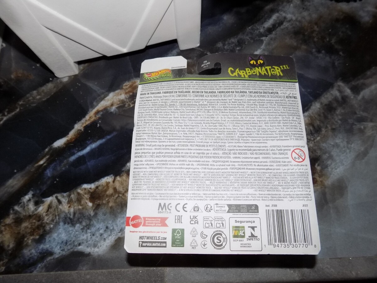 The SPIN MASTER 2024 Hot Wheels Monster Trucks GLOW IN THE DARK CARBONATOR XXL is a brand new diecast toy vehicle featuring a 1:64 scale Monster Truck design. This colorful multi-color vehicle is part of the Hot Wheels Monster Trucks series and is sure to delight boys and girls aged 3 and above. With its unopened box and glow-in-the-dark features, this collectible toy promises hours of imaginative play. Made in Thailand, this Hot Wheels Monster Truck is a must-have for any young car enthusiast.