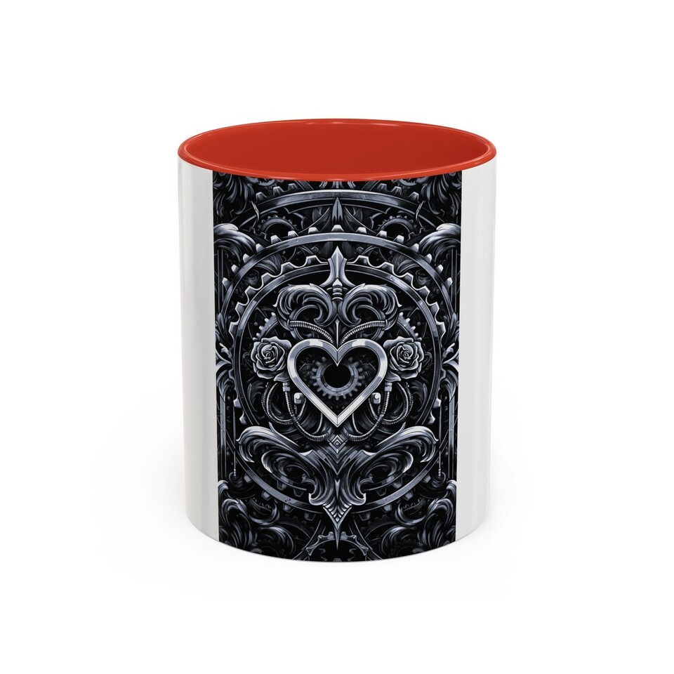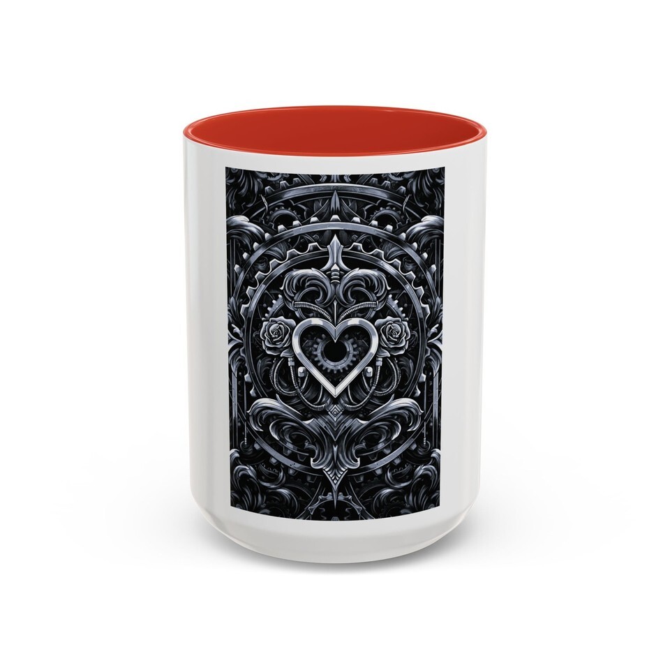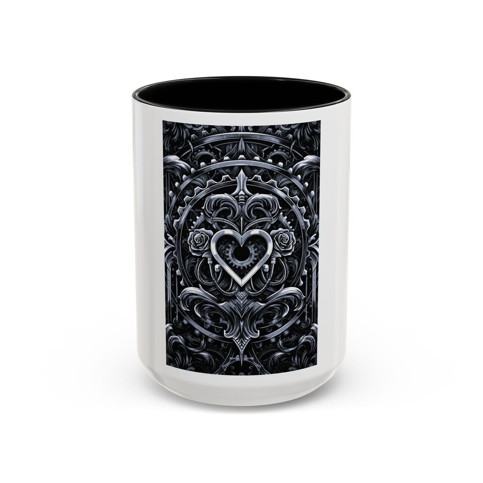 Steampunk Ornate Gothic Heart Black Accent Mug Filigree Rose Ceramic