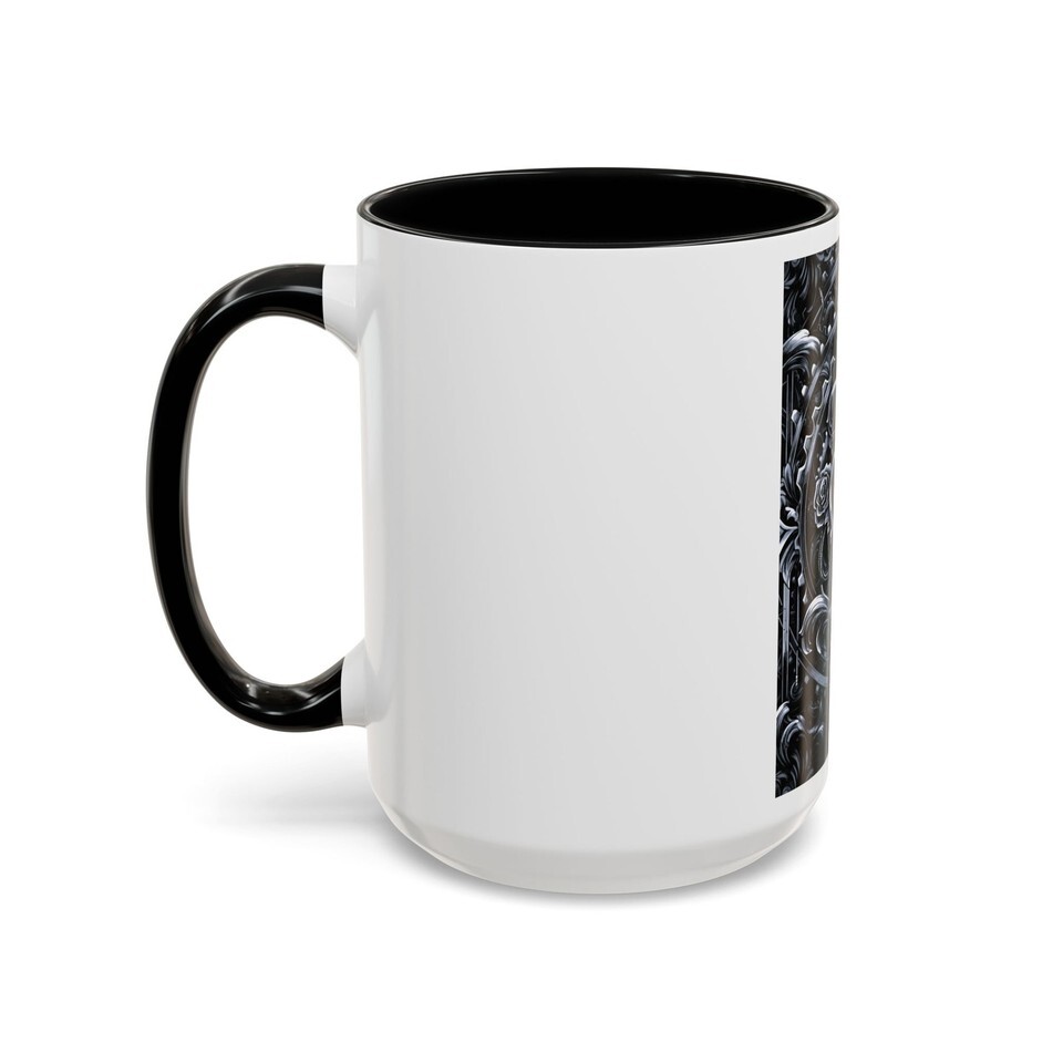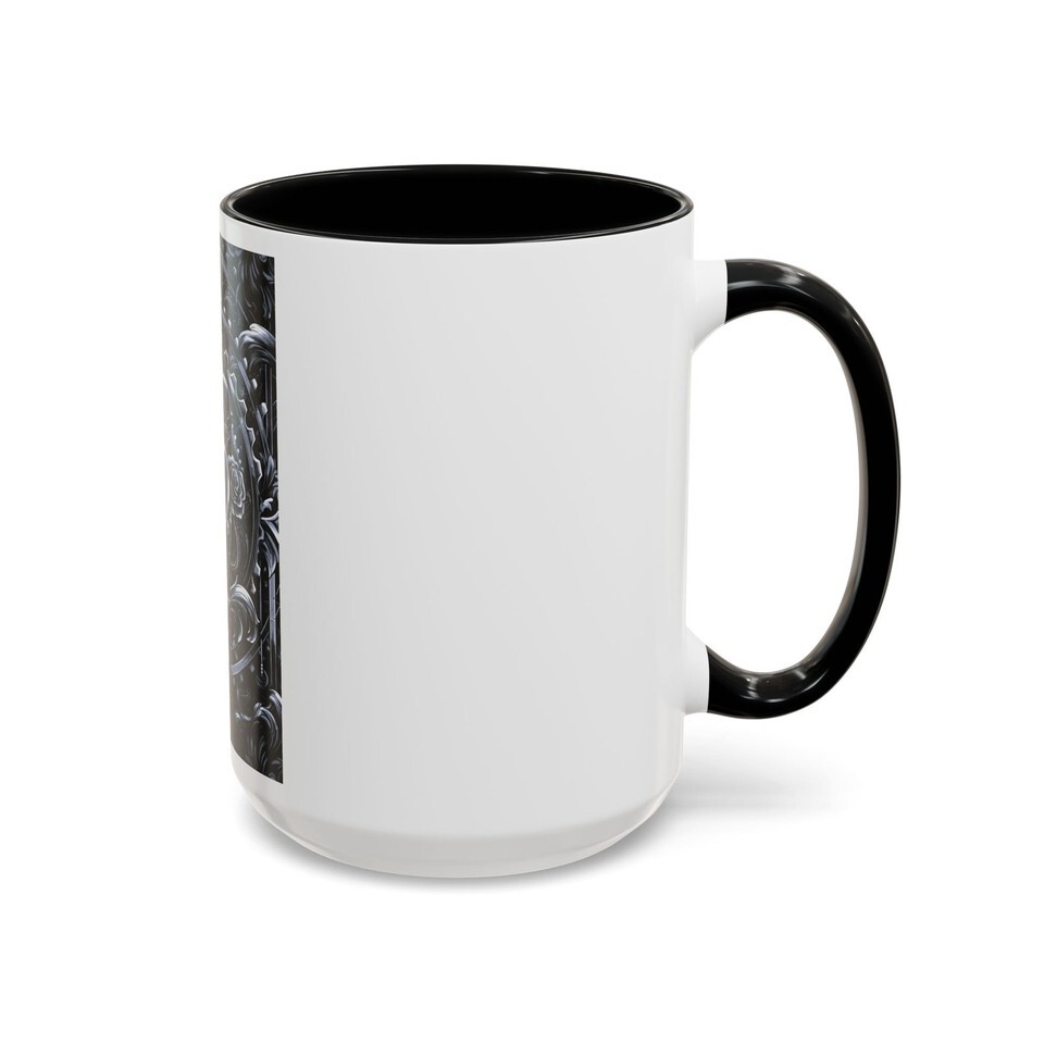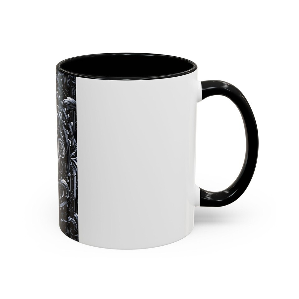 This ceramic accent mug blends gothic romance with everyday ritual. Deep charcoal filigree frames a subtle heart at the center, giving the cup an antique, handcrafted feel while the glossy black interior and handle add striking contrast. It?s the kind of mug that turns a morning coffee into a small, private moment?warmth in a dark, ornate vessel that feels both familiar and a little mysterious. Fits neatly into kitchen shelves or a curated mug collection and holds your favorite brew steady while you settle into a slow, thoughtful morning or late-night tea ritual.