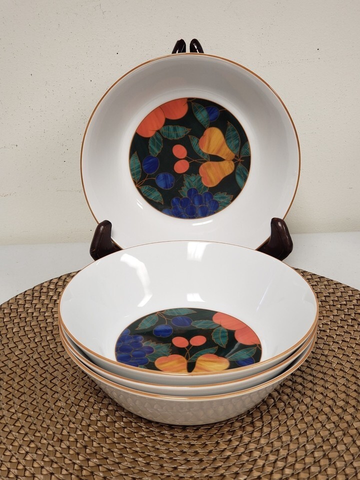 Set of 4 vintage fine porcelain fruit bowls from Noritake Impromptu Forest Bounty Collection