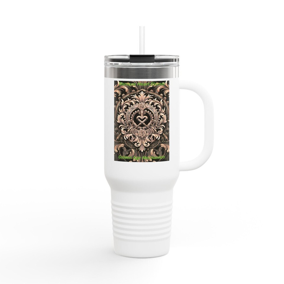 Ornate Steampunk Heart 40oz Tumbler with Handle Baroque Roses Gears Gothic