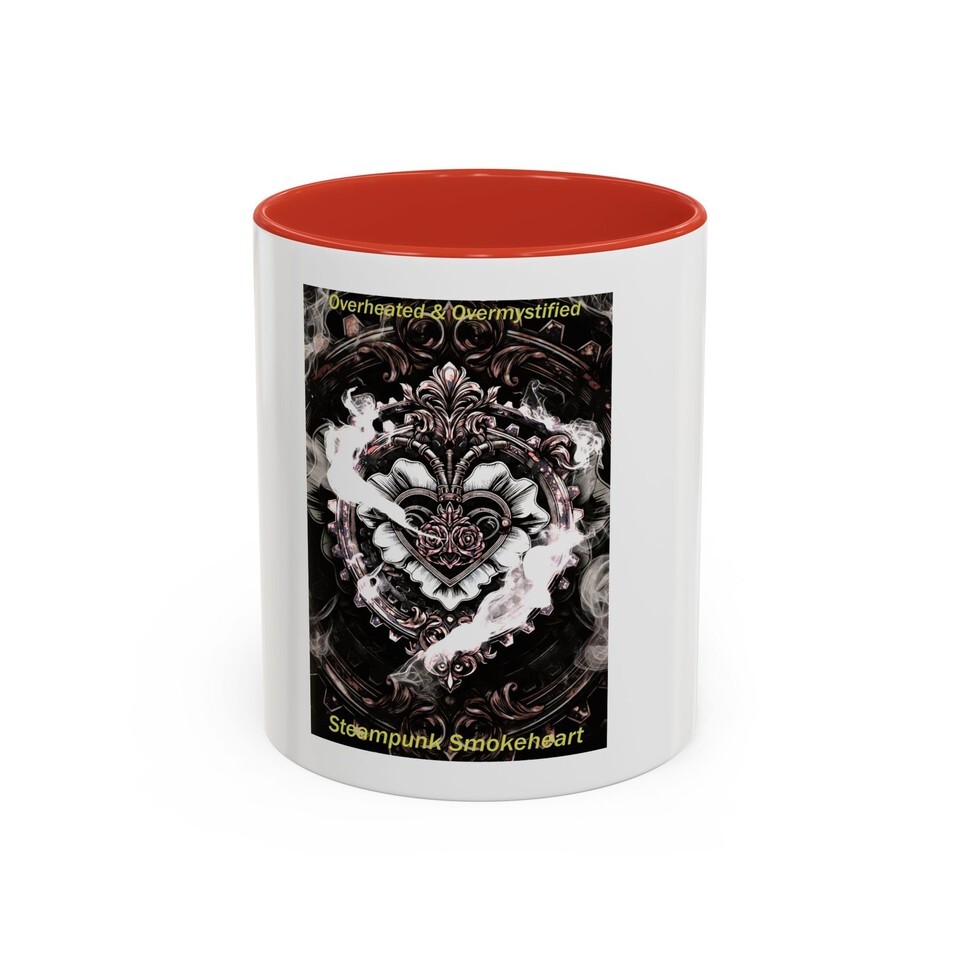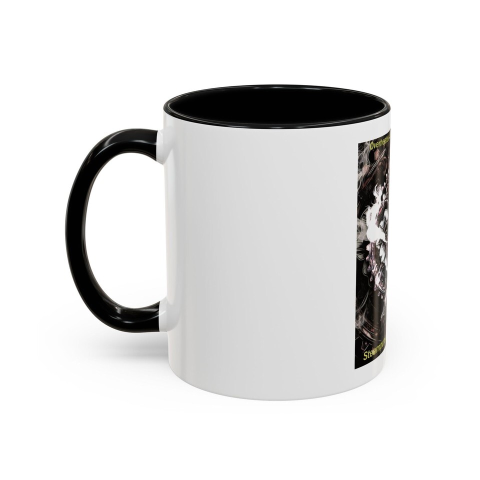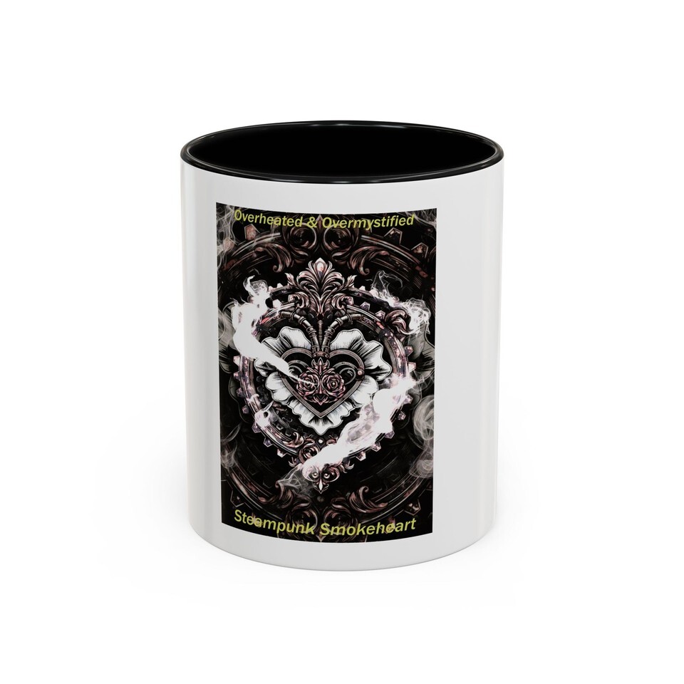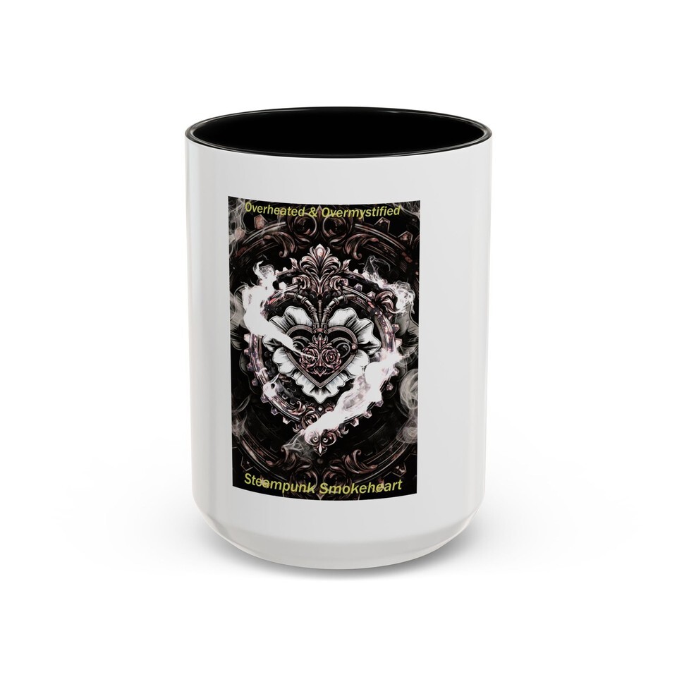 Warm steam coils and brass gears meet midnight tones on this colored-accent ceramic mug. The design?s ornate, steampunk-inspired emblem feels like a secret sigil revealed in a fog of cigarette smoke ? moody, detailed, slightly defiant. Sip slowly and the mug becomes part of a routine: an early-morning ritual before the workshop lights come on, a late-night companion while sketching blueprints, or a quiet pause between creative bursts. The black interior and handle deepen the contrast, making the printed artwork stand out while the glossy finish keeps colors vivid wash after wash. Durable enough for daily use, it handles microwave and dishwasher cycles without losing its edge.