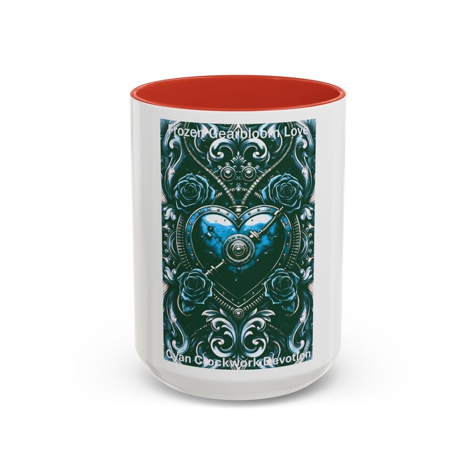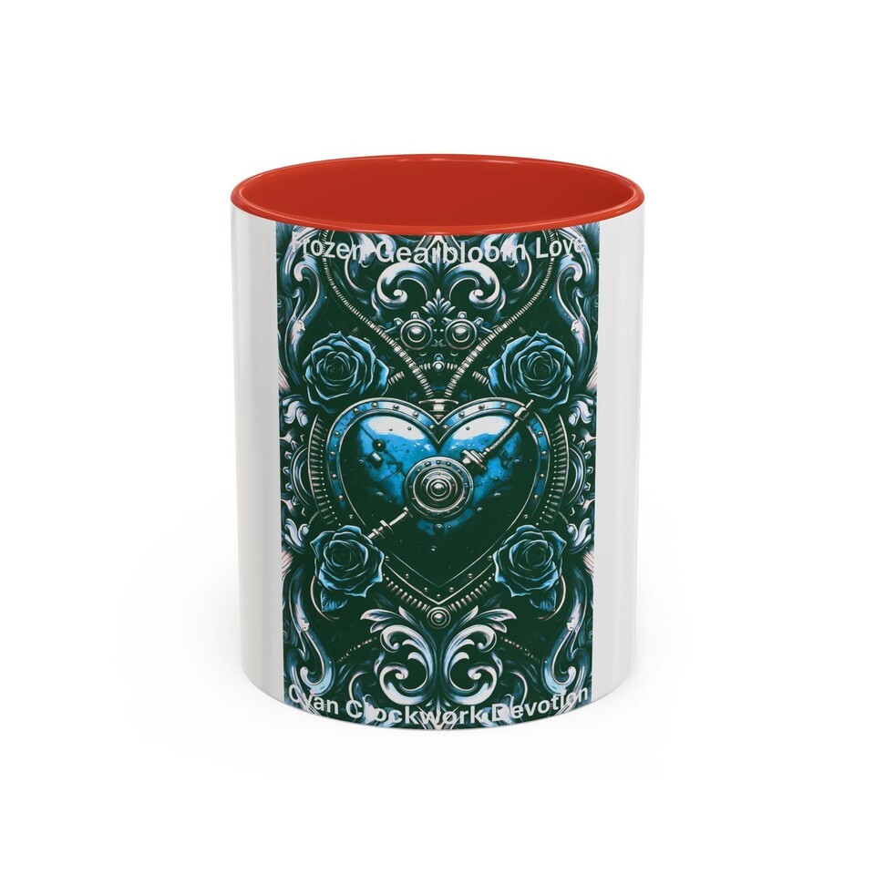 Teal Steampunk Locked Heart Mug Ornate Floral Gear Roses 11oz or 15oz
