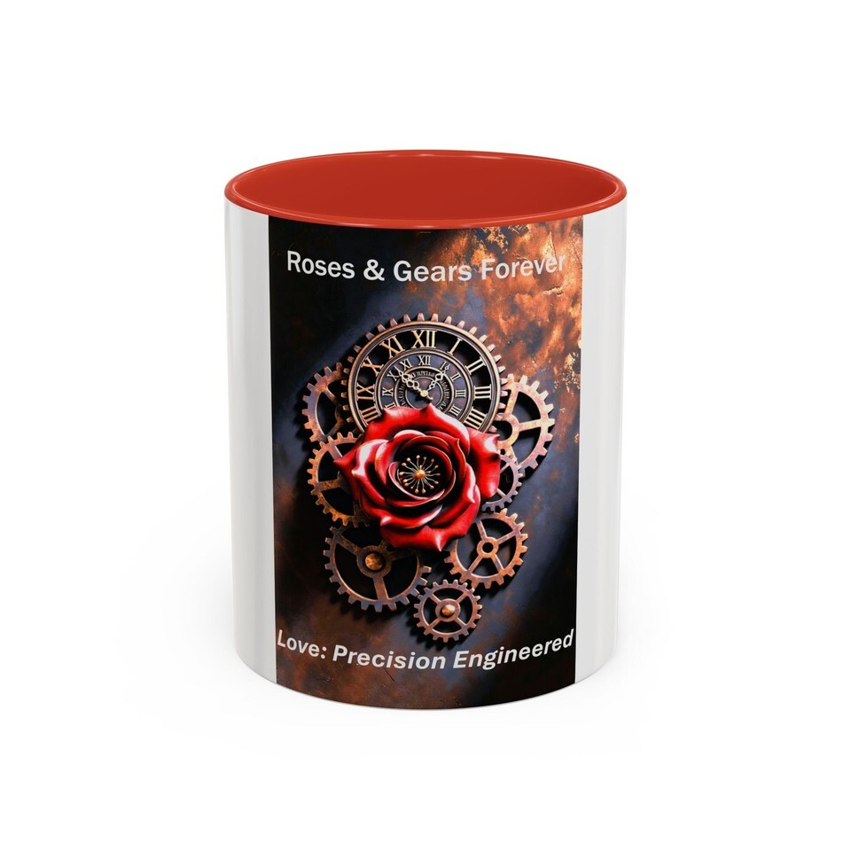 Steam, brass, and a single red bloom ? this ceramic mug carries a small world of contrasts. Warm coffee meets cold metal in a design that pairs a vividly realistic rose with precision gears and a weathered clockface. The glossy black interior and handle frame the artwork like a stage, making the colors pop while the sturdy C-handle keeps your grip secure. Sip slowly and let the image pull you into late-night workshop hours, quiet breakfasts, and long conversations about craft and curiosities.