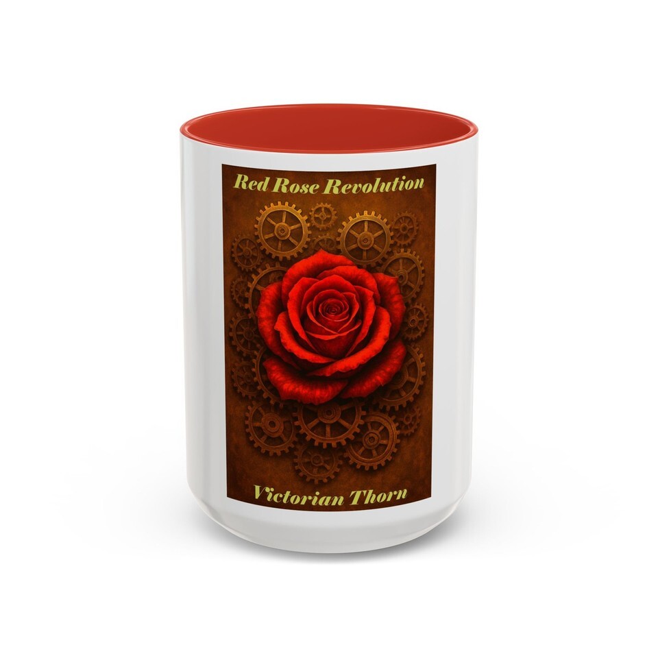 Steampunk Red Rose Revolution Coffee Mug 11oz 15oz Gears Victorian Thorn