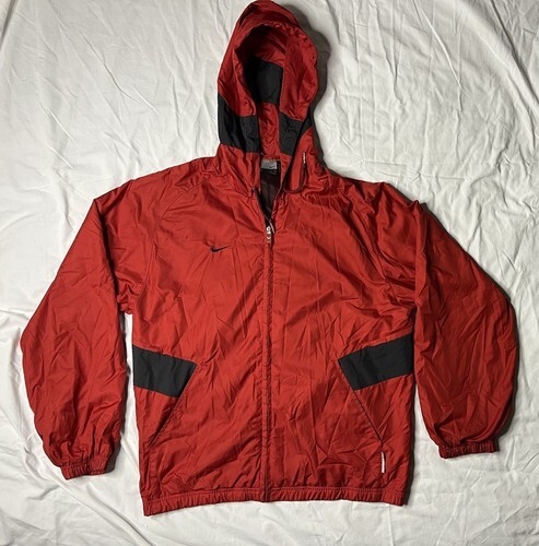 Nike Soccer Windbreaker Men’s Small Red Hooded Jacket Full zip