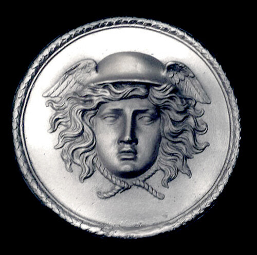 Hellenistic and Roman Hermes Mercury sculpture plaque in silver Finish