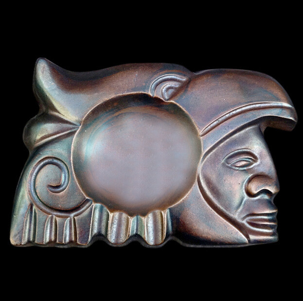 Aztec Maya Inca sculpture ashtray in dark bronze finish