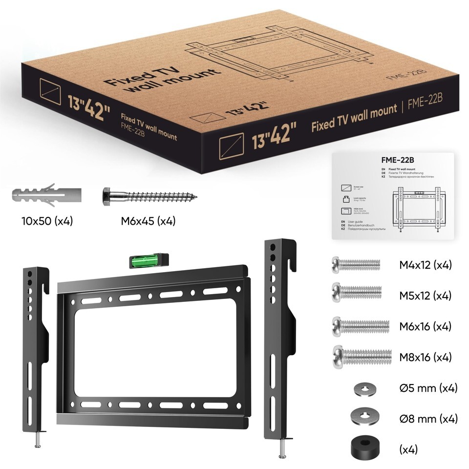 TV SLIM WALL MOUNT | FME-22B is a fixed TV mount flat for 13 - 42 inch TV screens and monitors | Flush TV wall mount holds up to 77.2 lbs | TV mounting bracket fits 75x75 - 200x200 VESA | You can easily install this small TV wall mount flat against wall , so the ultra thin TV mount slim will blend in perfectly with any interior design