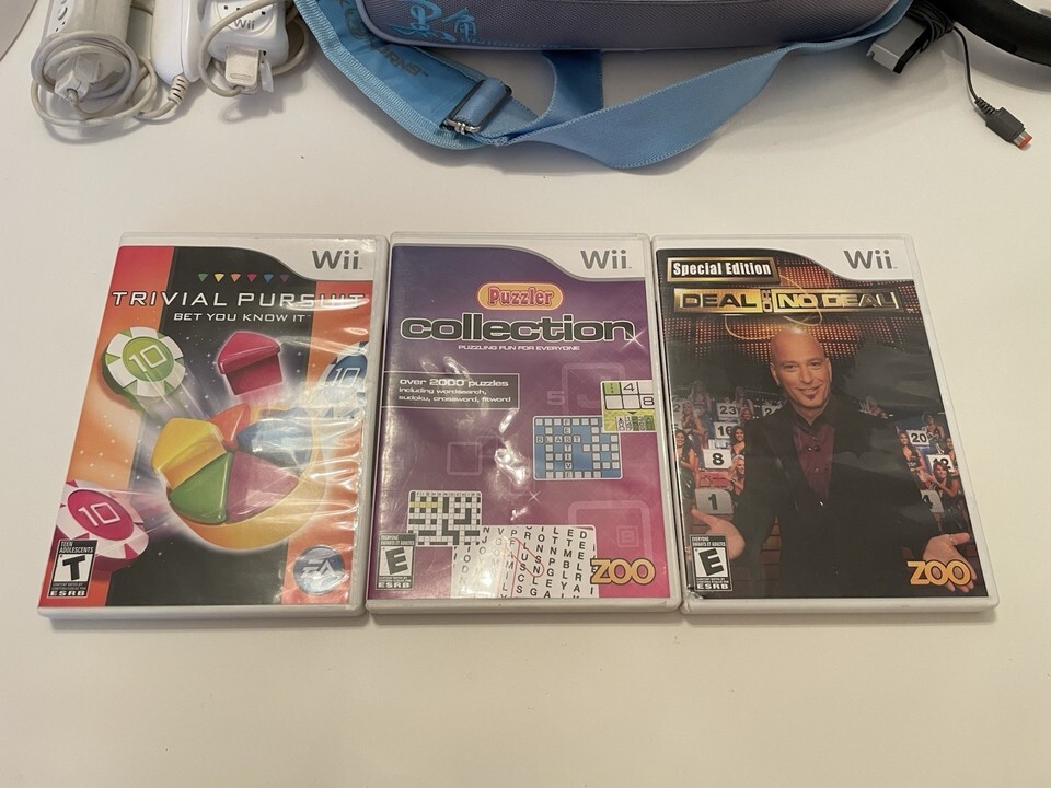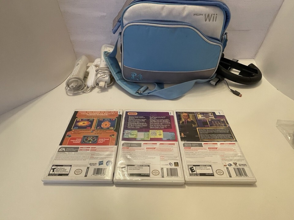 Wii Console White w/ Accessories, Cables, Wiimotes, Nunchuks, 5 Games, Wheel,Bag