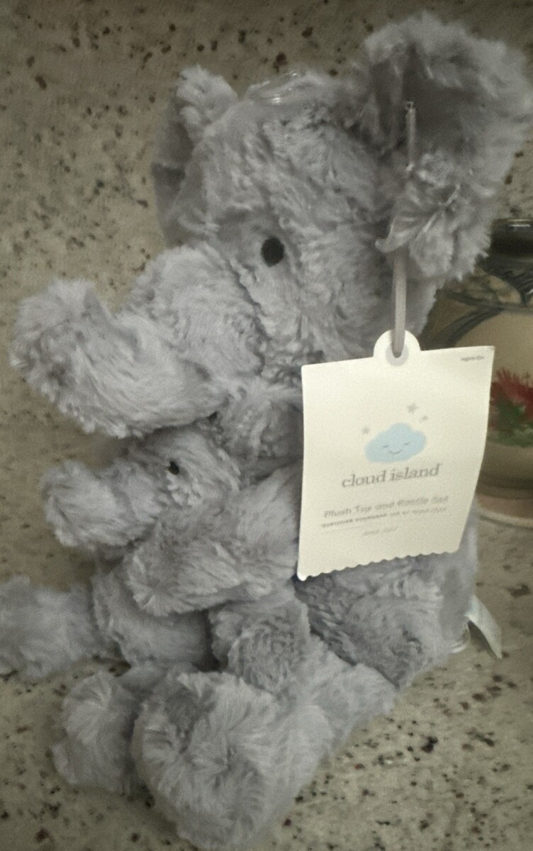 NEW Cloud Island Plush & Rattle Set Mom Baby Elephant Gray 15” Great Gift NWT