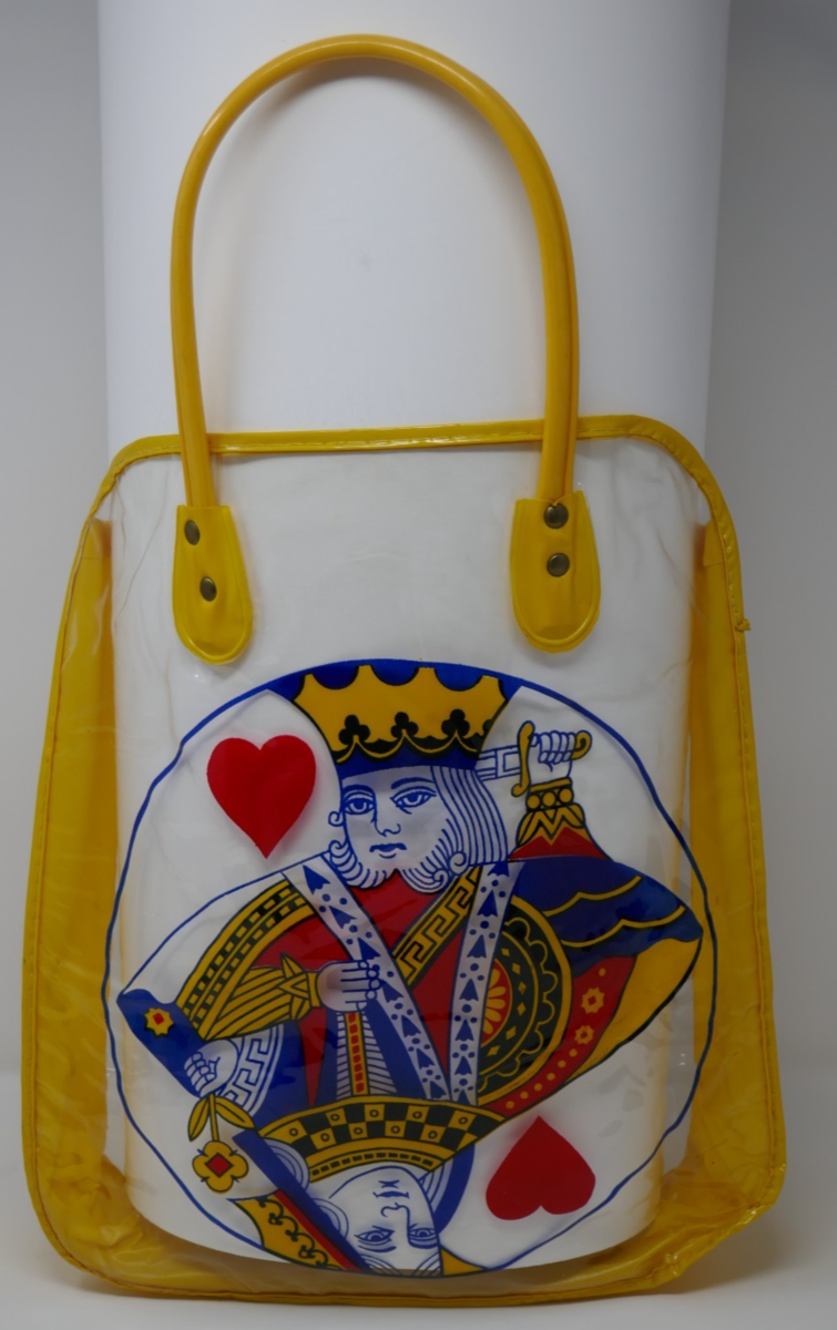 Vintage 1960s 1970s King Queen Hearts Plastic Vinyl Shopping Tote Utility Bag