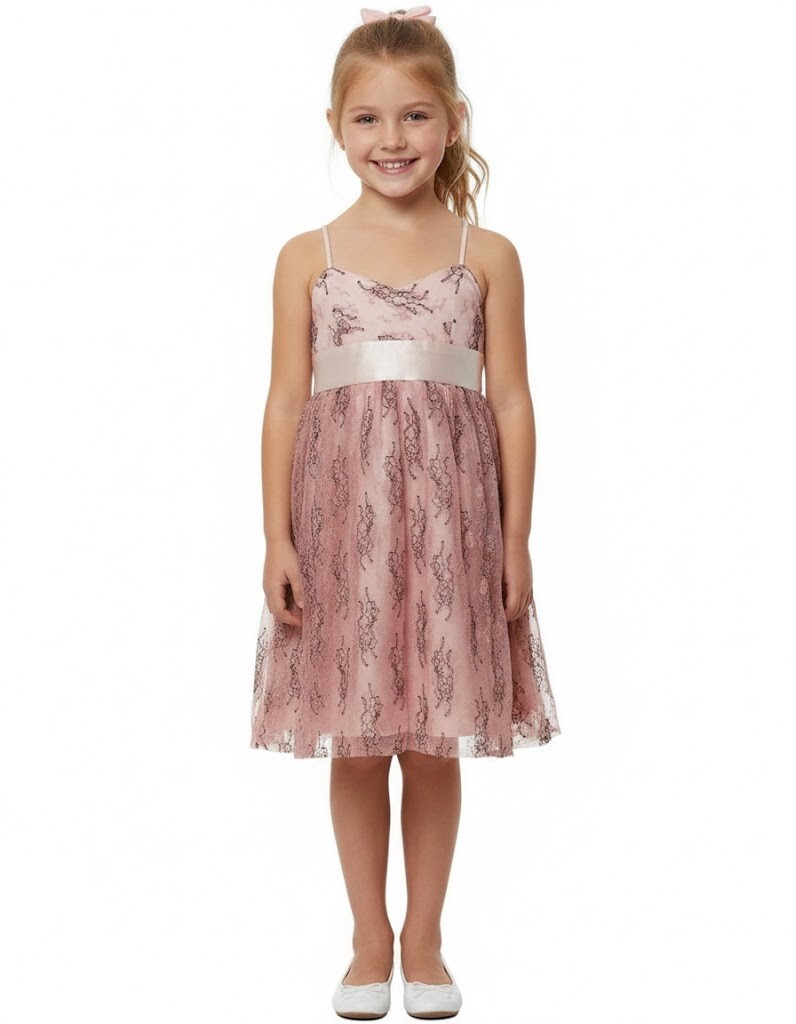 C.W. Designs Girls Spaghetti Strap Tie Back Lace with Silk Lining Dress (M) NWOT