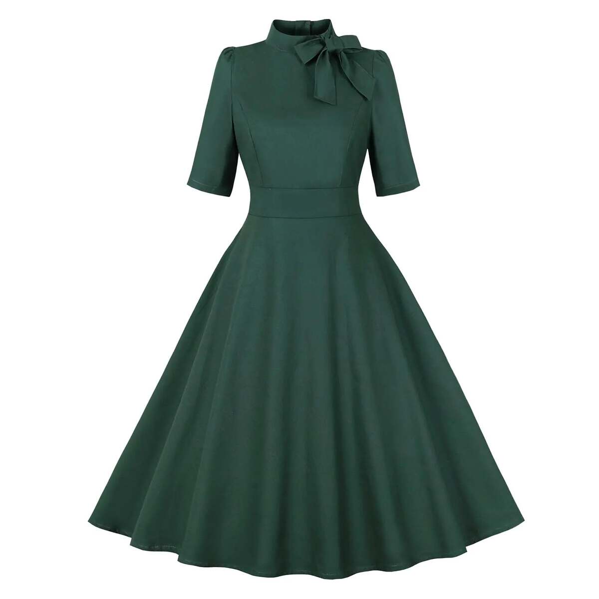 ["Package Include: 1PC Dress; Short Sleeve Tie Neck Solid Color Color Block Concealed Back Zipper Swing Style; Womens 1950s Retro Dress Short Sleeve Tie Neck Swing Dress Cocktail Dress." Design: Short sleeve tie neck burgundy swing dress looks mature and graceful by black neckline cuffs and belt by its color block. Short sleeve green swing dress simple and versatile will go out of fashion over time. Flattering A-line silhouette looks so graceful and fabulous as if a lotus leaf is swaying gently when you move turn or twirl. 1950s Dresses for Women 50s Style Audrey Hepburn Vintage Summer A Line Swing Midi Dress Cocktail Party Evening Prom Gown Rockabilly Retro Short Sleeve. Audrey Hepburn style rockabilly swing cocktail dress for women extremely sexy and elegant gives you a retro 50s pin up look. Short sleeve tie neck swing dress concealed zipper at back can release your feminine beauty and elegance. Tie a knot at neckline stylish and pretty catches up with the current trends. 1950s Dresses For Women Retro Dress Short Sleeve Tie Neck Neckline Swing Midi Dress Cocktail Dress. Occasions: 1950s Dresses for Women 50s Style Audrey Hepburn Vintage 1940s Rockabilly Retro Short Sleeve Summer A Line Swing Midi Skater Dress Cocktail Party Evening Prom Gown Fit for cocktail party evening party wedding ceremony daily casual wear dating photo shoot or other occasions. "Fabric: Women 1950s Vintage Short Sleeve Retro Swing A Line Midi Summer Dress Cocktail Party Evening Prom Gown made of selected fabric super soft to touch comfortable and skin-friendly to wear with appropriate elasticity and durability no irritation to the delicate skin wont deform or shrink easily after washing offers a pleasant wearing experience to you."]