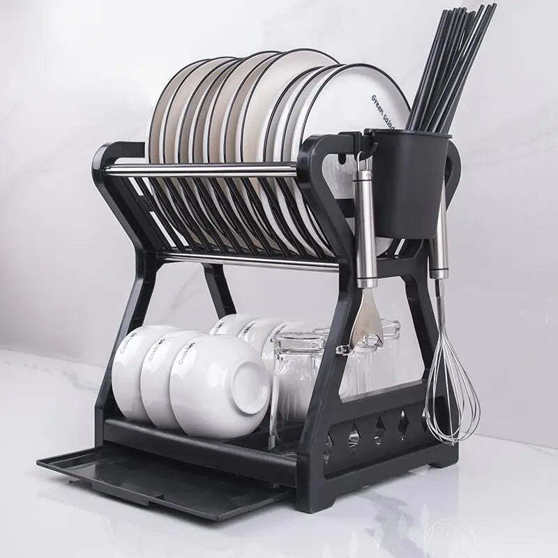 Transform your dish storage experience with our Double-Layer Dish Rack. It's not just a kitchen accessory; it's a must-have organizational tool that combines functionality with elegance.