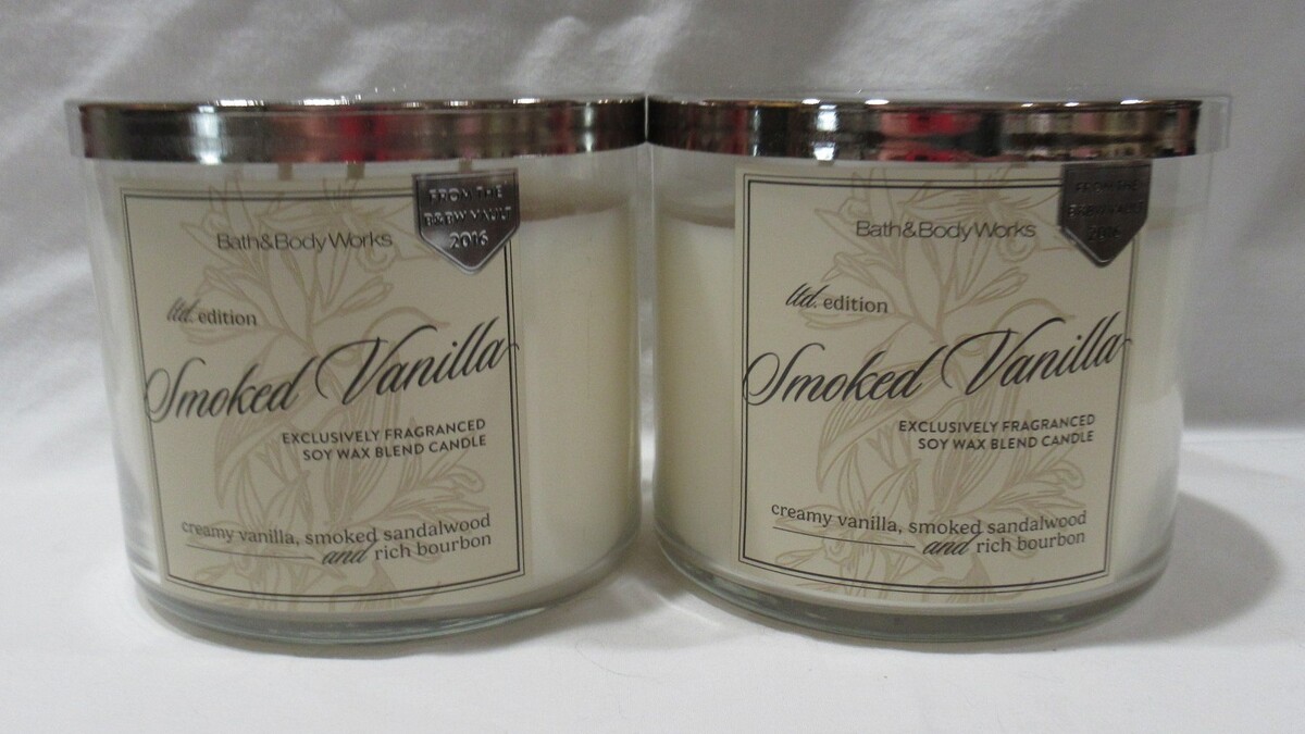 Bath & Body Works 3-wick Scented Candle Lot Set of 2 ltd edition SMOKED VANILLA