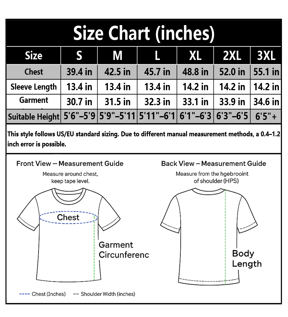 This style follows US/EU standard sizing. Due to different manual measurement methods, a 0.4–1.2 inch error is possible.