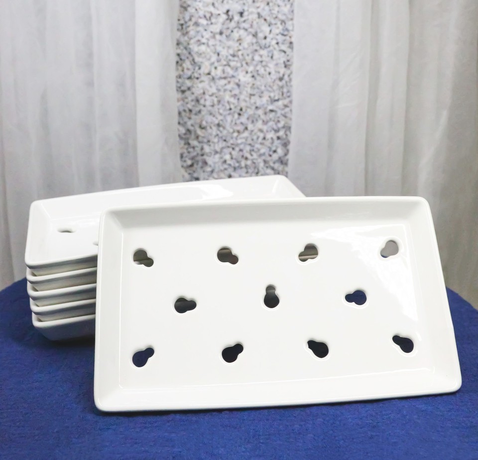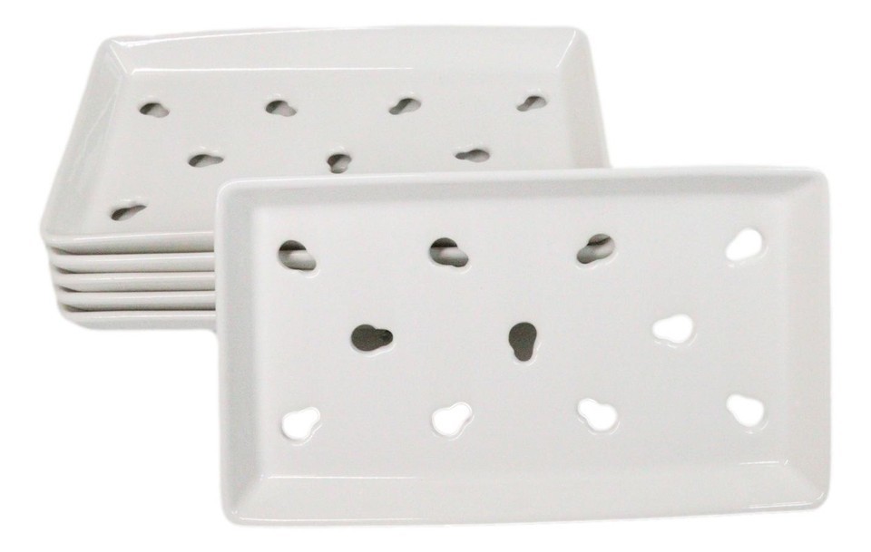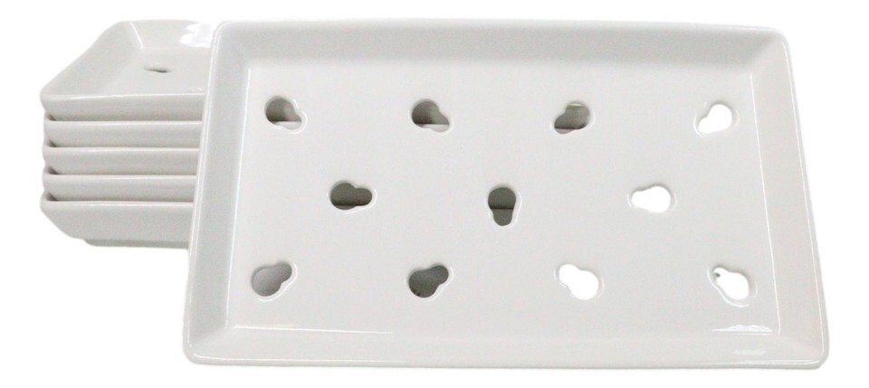 Pack Of 6 Ceramic White Neta Zara Sushi Case Plates With Drip Holes 9" By 5"