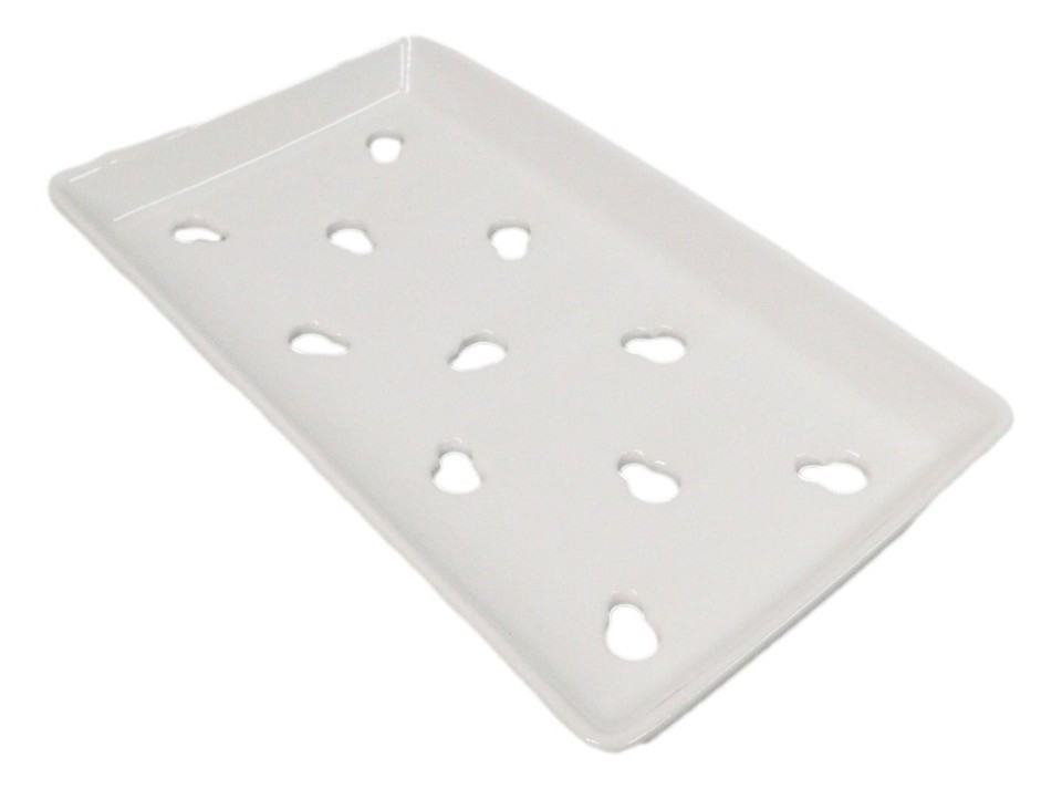 ? Neta Zara plates are essential building blocks for an attractive and functional sushi case. The holes on the bottom allow excess liquid to drain, keeping fish and seafood fresh longer. These Neta Zara plates are a staple must haves for any Sushi Chef for food safety preparations.