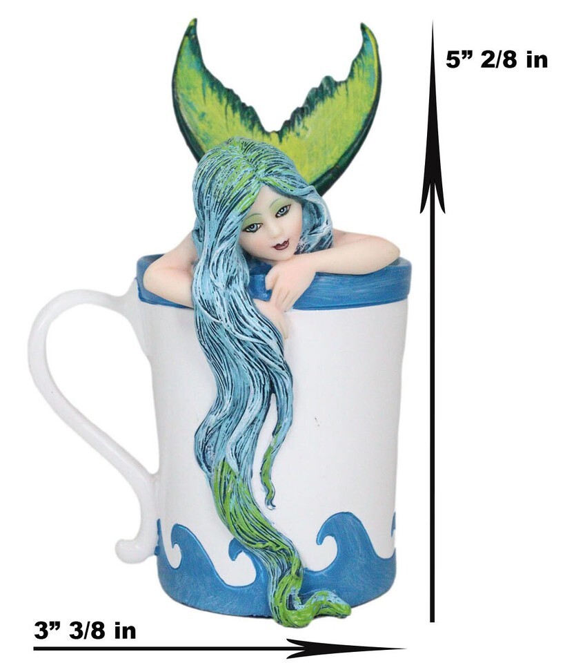 ? This Beautiful Mermaid In Coffee Cup Sculpture is made of designer composite resin, hand painted and polished individually. Licensed artwork by Amy Brown