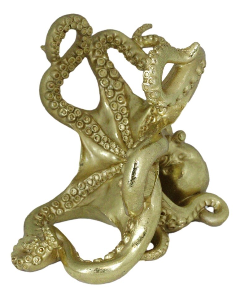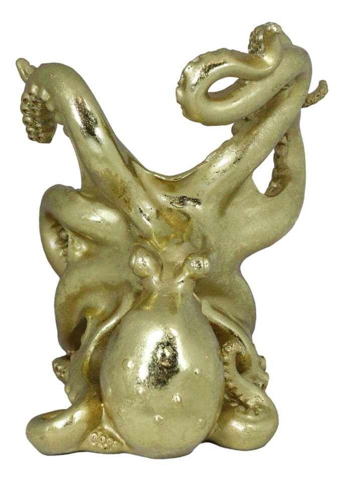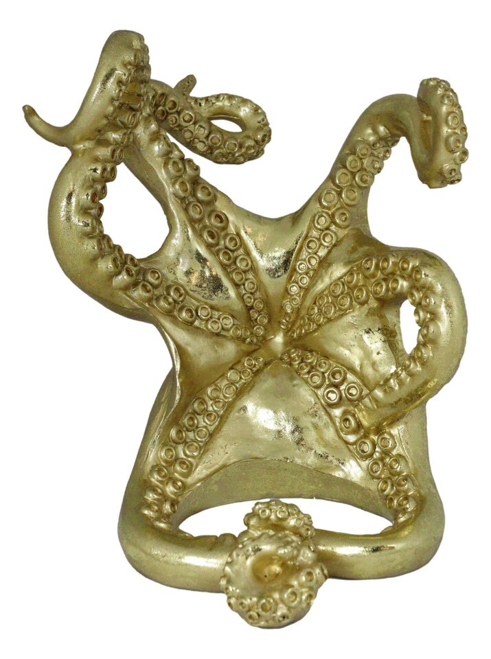 Nautical Gold Giant Sea Octopus Wine Holder Cephalopod Kraken Bottle Caddy Decor