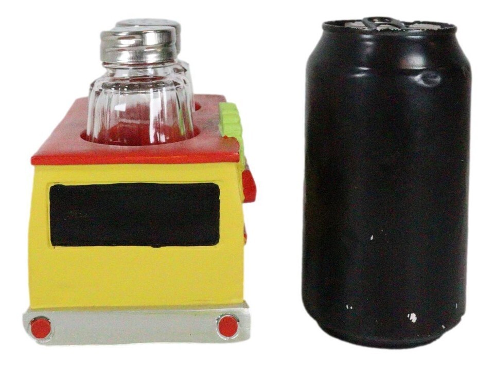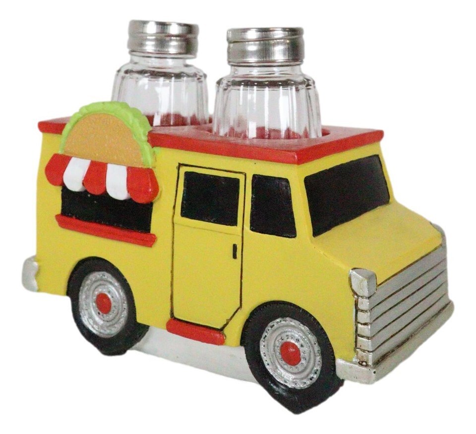 ? This Taco Truck Salt Pepper Shakers Holder Figurine is made of polyresin, hand painted and polished individually.