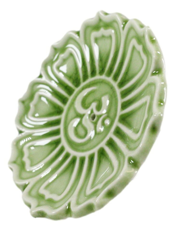 Fengshui Zen Buddha Om Lotus Padma Flower Ceramic Round Disc Incense Burner