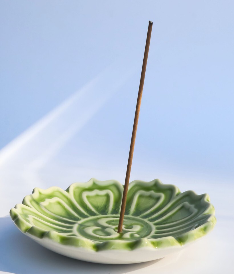 ? This Buddha Om Lotus Padma incense stick holder is attractive in design and sculptwork. Simply place a smoking incense stick in the center of the disc and enjoy the aroma from your incense. The Om mantra at the center and the lotus shaped incense burner will help your focus the recenter your consciousness and inner self.