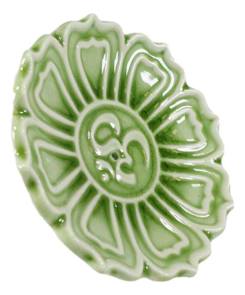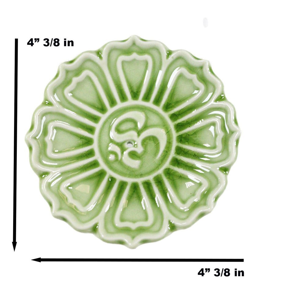 Ebros Fengshui Zen Buddha Om Lotus Padma Flower Ceramic Round Disc Incense Burner