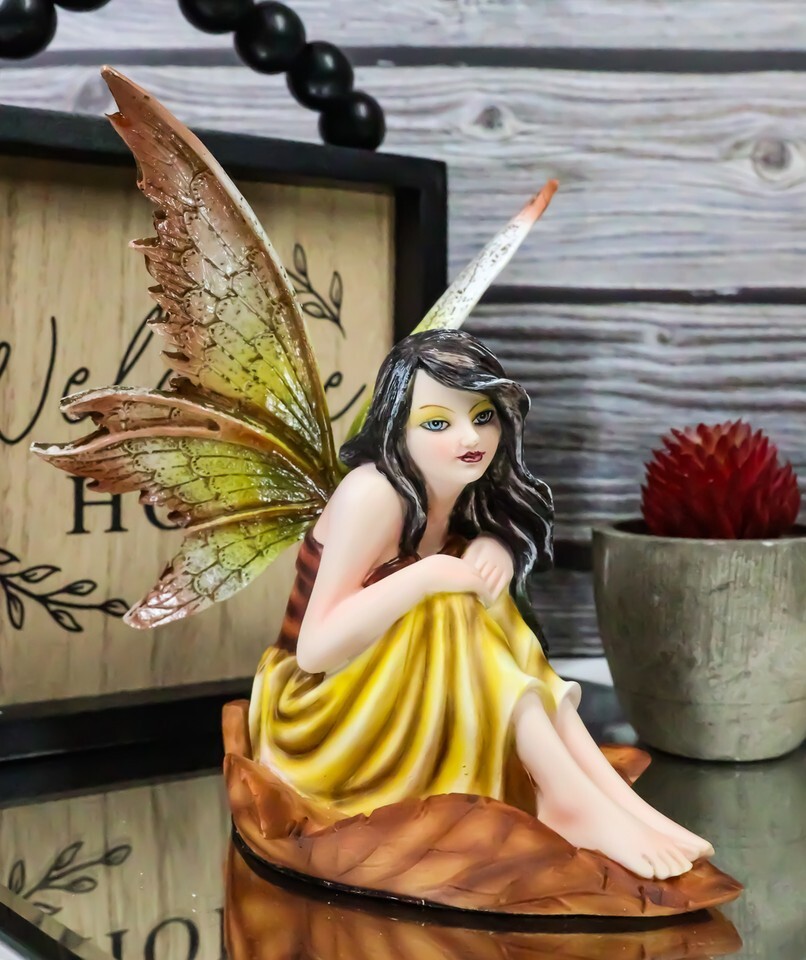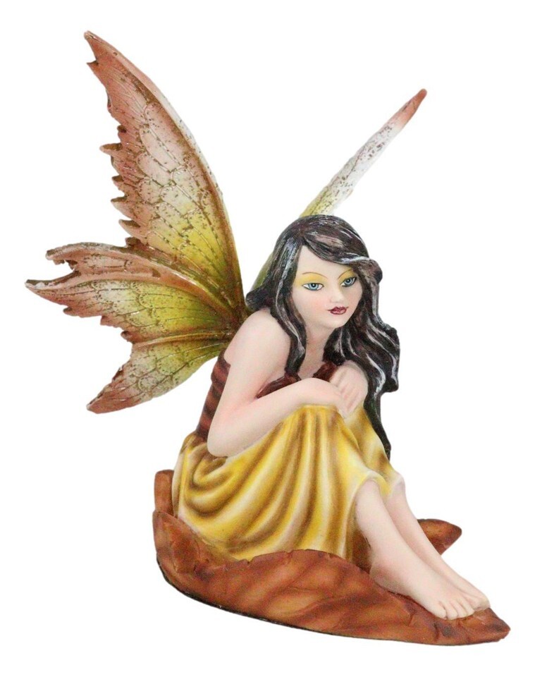 Ebros Fall Fairy Figurine Red Oak Leaf Autumn Garden Faerie Fantasy Sculpture 5.5"H