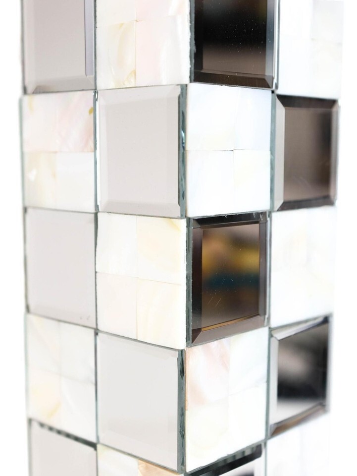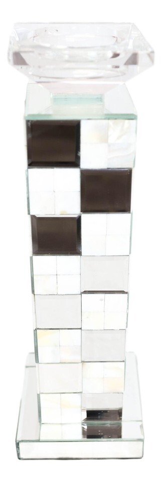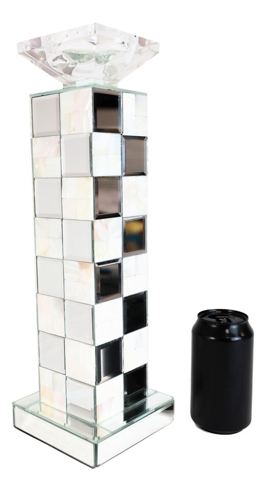Modern Beveled Mirrors Capiz Shells Checkered Pillar Candle Holder Decor 15"