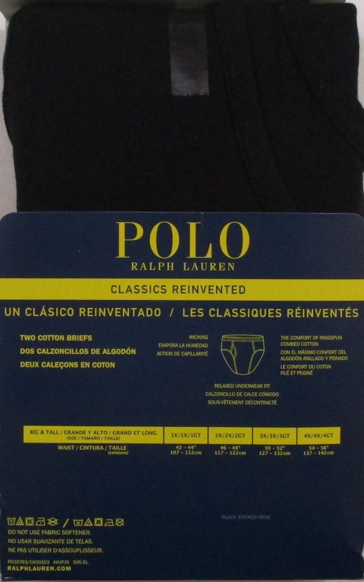 2 GENUINE POLO RALPH LAUREN SIZES 1XL 2XL 3XL 4XL WHITE BLACK 100% COTTON BRIEFS