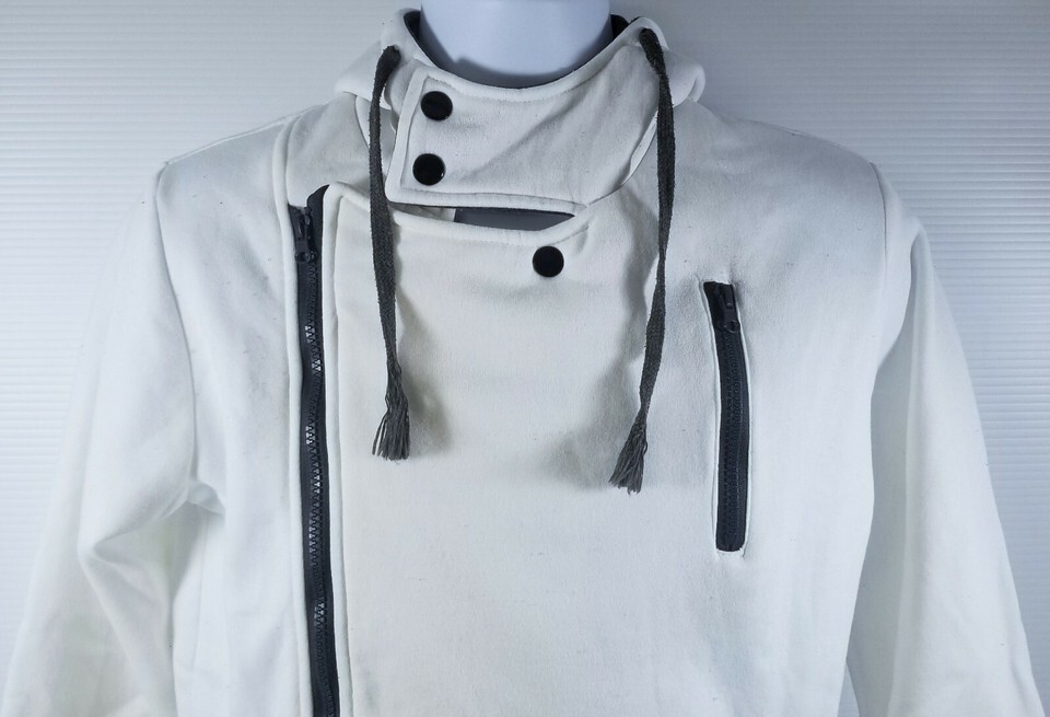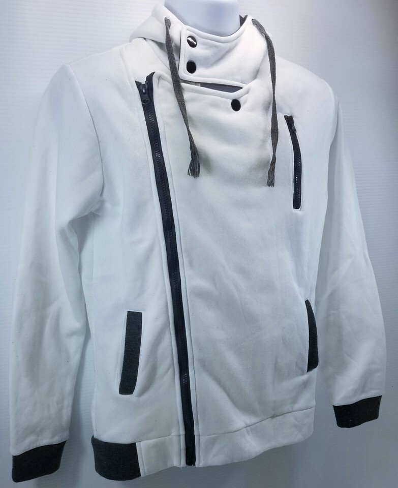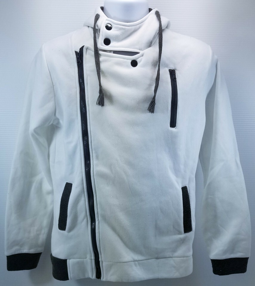 V) Qiaoyishi Sport Vogue White Gray Hooded Pullover Sweatshirt Medium