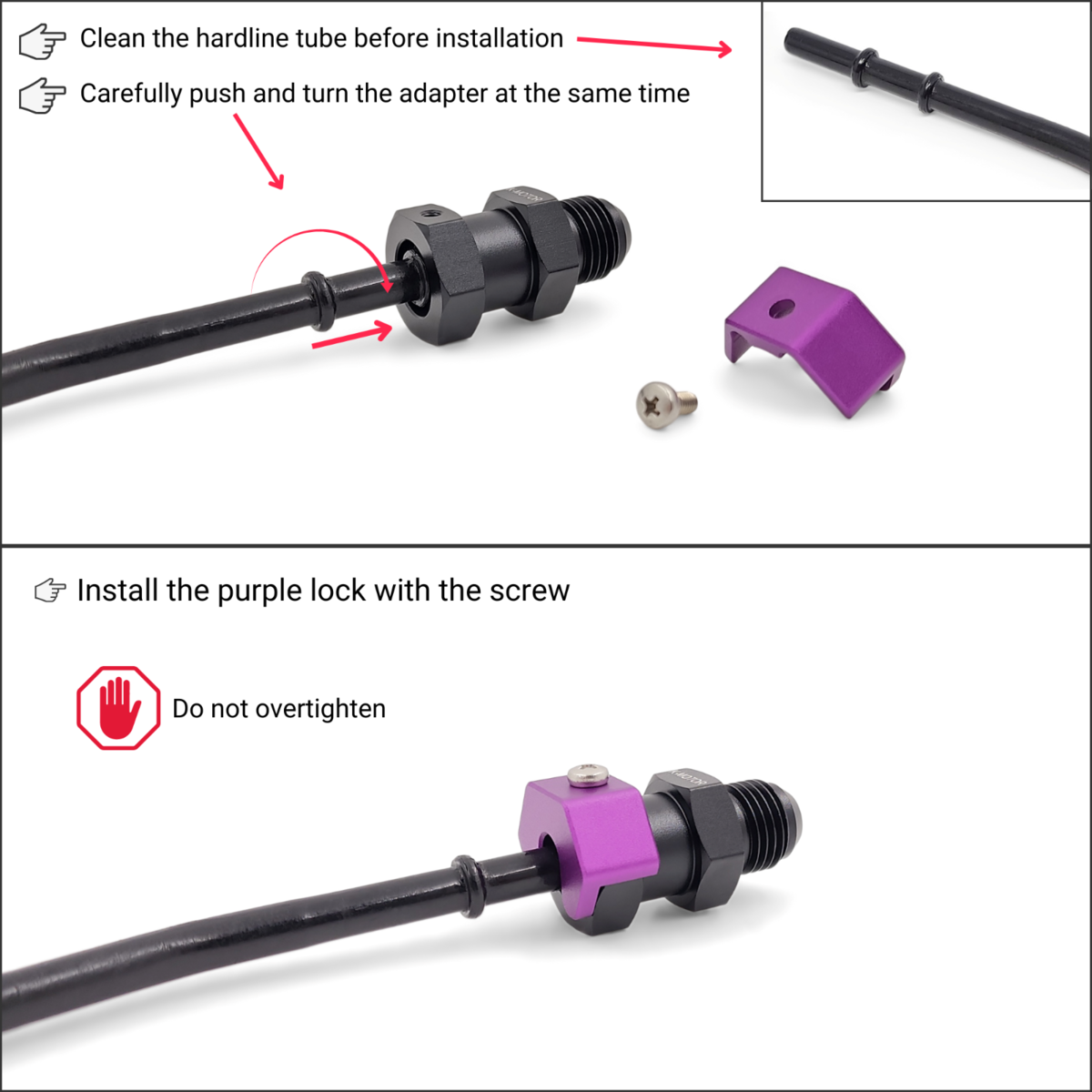 A type of hardline fitting that is designed to connect a 1/4 inch rigid metal or plastic tubing to a 6AN braided hose. The 6AN size refers to a standard size for performance fuel and oil hoses used in automotive and racing applications. This fitting adapter is commonly used in high-performance automotive applications, where quick and reliable connections are essential. Provides a fast and efficient way to connect a 1/4 inch rigid tubing to a 6AN braided hose, making it a popular choice among automotive enthusiasts and professionals alike.