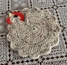 This product is a handmade crocheted black and tan teddy bear potholder, perfect for any occasion. Made from 100% cotton, this unique potholder is both functional and decorative, featuring a charming teddy bear design. With a homespun style and theme, this one-of-a-kind item adds a touch of warmth and whimsy to your kitchen or dining area. Enjoy its cozy care instructions of hand washing only, making it a practical and delightful addition to your home.