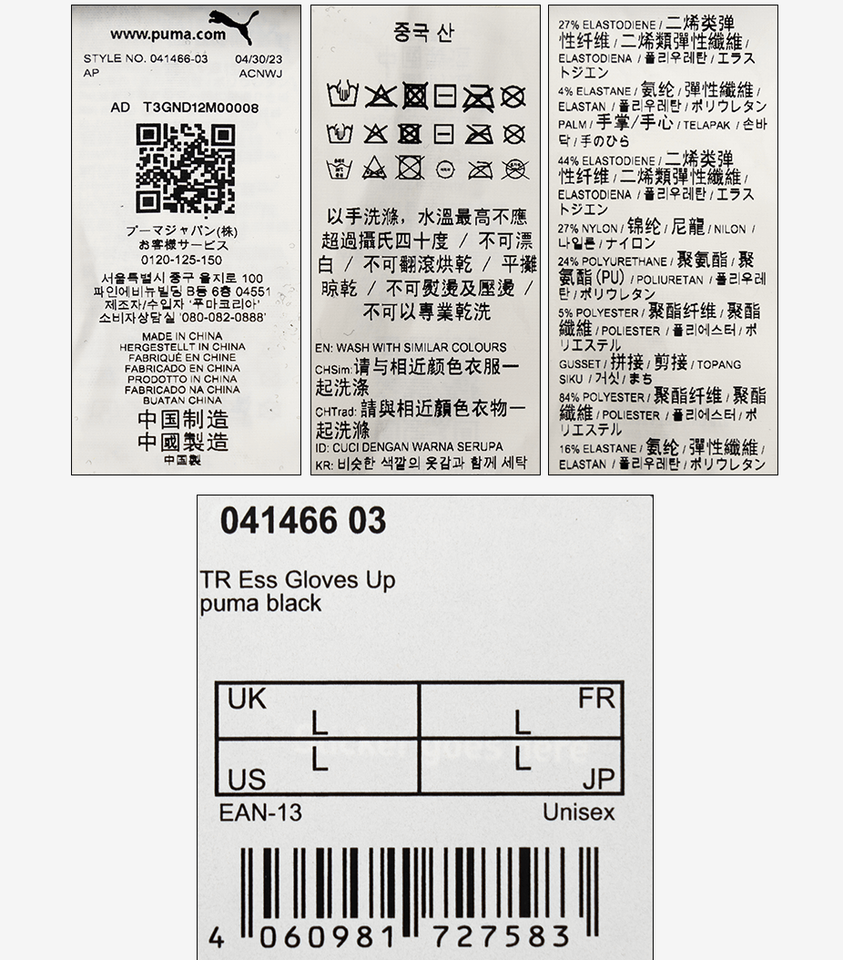 PUMA TR ESS Gloves Up Sportswear Training Support Gloves Black NWT 04146603