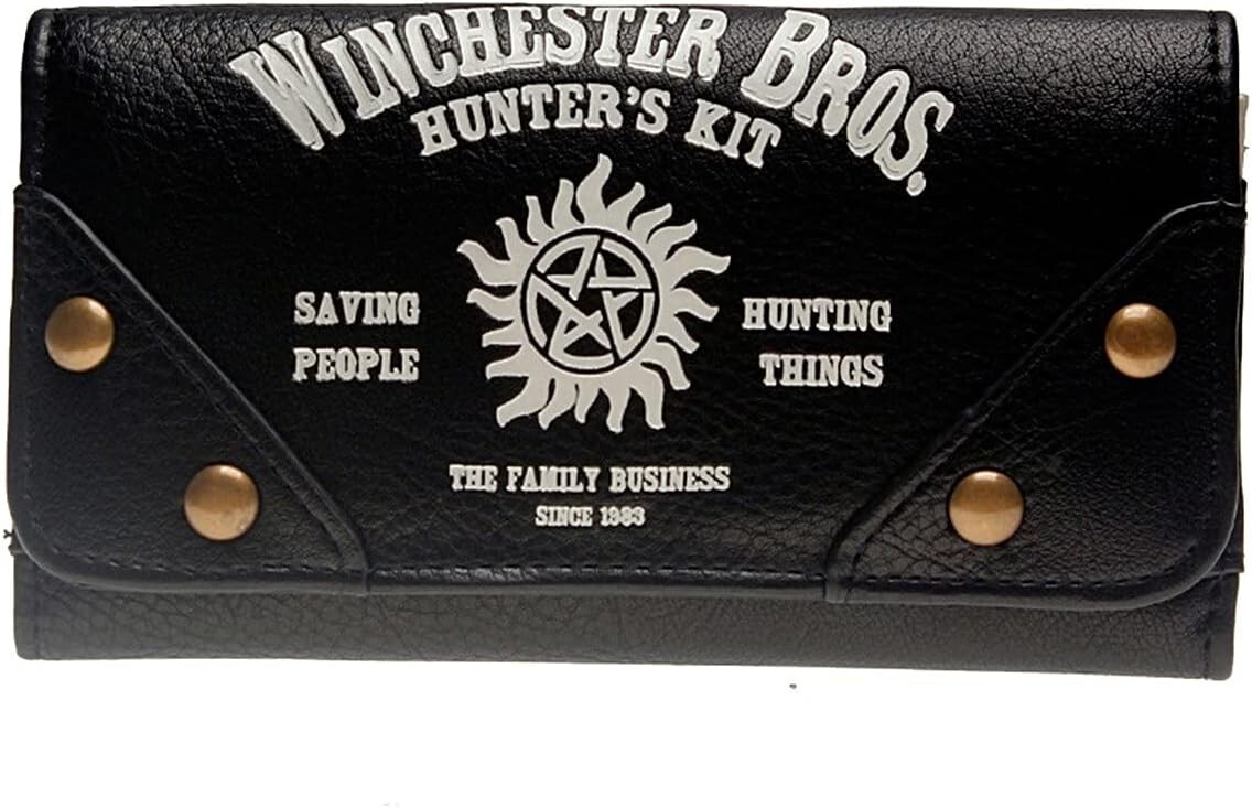 Brand New Supernatural Winchester Bros Hunters Kit Womens Hand Purse Clutch Wallet 100% PU Leather Inside of wallet features ID Window, billfold and multiple card slots